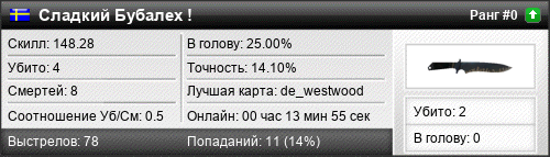 | de_inferno | 0 | 0.00 | 0.00 | 1 | 3 | 00:04:52 | 01.01.2018 | |