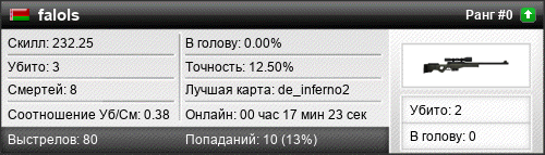 | de_inferno2 | 3 | 0.38 | 0.17 | 1 | 11 | 00:17:18 | 22.12.2017 | |