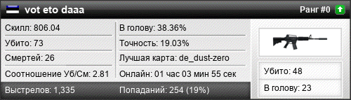 | de_dust-zero | 33 | 3.67 | 1.36 | 1 | 18 | 00:24:19 | 26.12.2017 | |