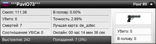| de_aztec | 0 | 0.00 | 0.00 | 1 | 5 | 00:09:56 | 14.08.2018 | |