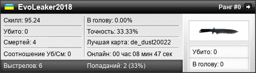 | de_dust20022 | 0 | 0.00 | 0.00 | 1 | 4 | 00:05:15 | 01.01.2018 | |