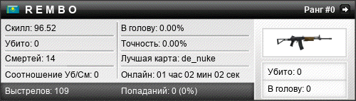 | de_nuke | 0 | 0.00 | 0.00 | 1 | 0 | 00:00:34 | 03.01.2018 | |