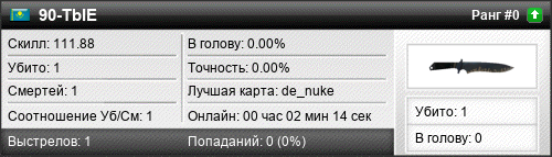 | de_nuke | 1 | 1.00 | 0.58 | 1 | 1 | 00:01:43 | 09.01.2018 | |
