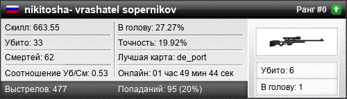 | de_king | 6 | 0.60 | 0.28 | 1 | 13 | 00:21:25 | 09.01.2018 | |