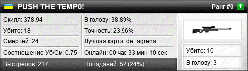 | de_aztec | 3 | 0.60 | 0.56 | 1 | 5 | 00:05:22 | 31.01.2018 | |