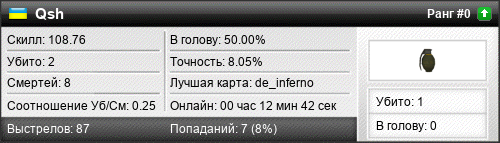 | de_inferno | 2 | 0.25 | 0.16 | 5 | 8 | 00:12:42 | 04.02.2018 | |