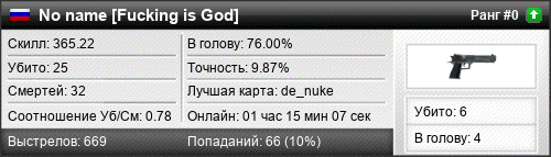de_dust2 | 4 | 1.33 | 0.34 | 1 | 8 | 00:11:54 | 06.02.2018 |