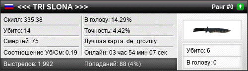 | de_grozniy | 3 | 0.30 | 0.16 | 3 | 18 | 00:18:55 | 31.01.2019 | |