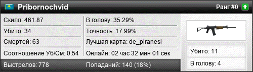 | de_piranesi | 11 | 1.38 | 0.56 | 1 | 14 | 00:19:34 | 03.03.2018 | |