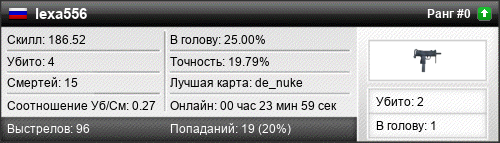 | de_nuke | 2 | 0.29 | 0.15 | 1 | 8 | 00:13:01 | 18.02.2018 | |