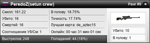 | de_aztec15 | 12 | 1.20 | 0.58 | 1 | 13 | 00:20:33 | 23.10.2015 | |