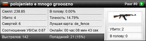 | de_overpass | 2 | 0.50 | 0.34 | 1 | 4 | 00:05:57 | 08.03.2018 | |