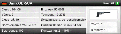 | de_mirage | 0 | 0.00 | 0.00 | 1 | 1 | 00:00:23 | 28.04.2018 | |