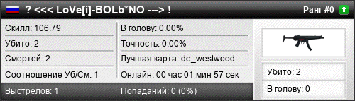 | de_westwood | 2 | 1.00 | 1.03 | 1 | 2 | 00:01:57 | 13.03.2018 | |