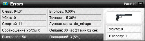 | de_mirage | 0 | 0.00 | 0.00 | 1 | 11 | 00:16:43 | 30.03.2018 | |