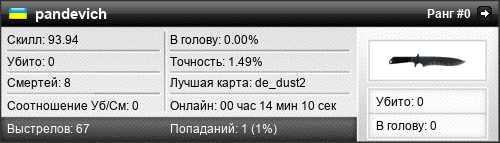 | de_dust2 | 0 | 0.00 | 0.00 | 1 | 9 | 00:13:11 | 04.04.2018 | |