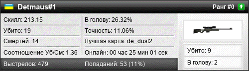 | de_dust2 | 17 | 1.55 | 0.91 | 3 | 13 | 00:18:44 | 09.12.2015 | |