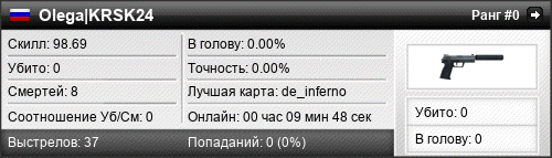 | de_inferno | 0 | 0.00 | 0.00 | 1 | 4 | 00:05:33 | 02.06.2018 | |