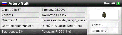 | de_vertigo_classic | 4 | 1.00 | 0.48 | 0 | 5 | 00:08:25 | 01.01.1970 | |