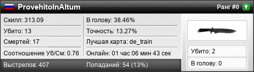 | de_mirage | 2 | 0.67 | 0.27 | 1 | 5 | 00:07:18 | 20.08.2018 | |