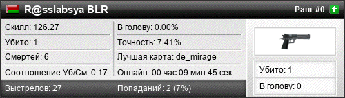 | de_mirage | 1 | 0.17 | 0.14 | 3 | 5 | 00:07:24 | 29.04.2018 | |