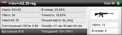 | de_king | 9 | 0.69 | 0.48 | 3 | 13 | 00:18:51 | 02.05.2018 | |