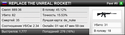 | de_nuke | 29 | 2.64 | 1.00 | 1 | 18 | 00:29:04 | 01.05.2018 | |