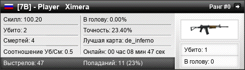 de_inferno | 2 | 0.50 | 0.23 | 1 | 5 | 00:08:47 | 23.10.2015 |