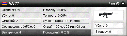 | de_inferno | 0 | 0.00 | 0.00 | 1 | 2 | 00:02:08 | 17.05.2018 | |