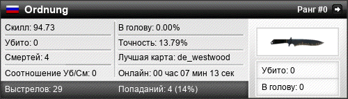 | de_westwood | 0 | 0.00 | 0.00 | 1 | 2 | 00:02:39 | 20.05.2018 | |