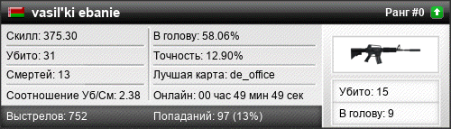 27.05.2018 @ 01:10 - 01:26 de_office 00:16:08 18 6 7 38.89% 16.25% 288.53 Без изменений