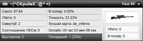 | de_inferno | 0 | 0.00 | 0.00 | 1 | 1 | 00:01:42 | 09.06.2018 | |