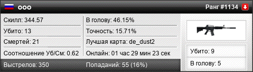 | de_dust2 | 5 | 0.56 | 0.13 | 2 | 23 | 00:37:13 | 13.01.2021 | |