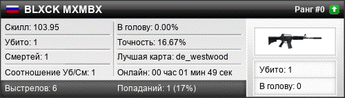 | de_westwood | 1 | 1.00 | 0.55 | 1 | 1 | 00:01:49 | 13.07.2018 | |