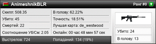 | de_westwood | 25 | 2.27 | 1.07 | 1 | 17 | 00:23:22 | 15.07.2018 | |