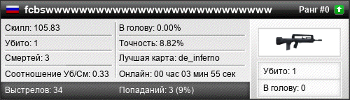 | de_inferno | 1 | 0.33 | 0.26 | 1 | 3 | 00:03:55 | 15.07.2018 | |