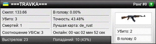 | de_westwood | 1 | 1.00 | 0.87 | 1 | 1 | 00:01:09 | 03.04.2019 | |