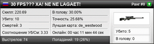 | de_westwood | 9 | 9.00 | 0.92 | 1 | 8 | 00:09:46 | 29.07.2018 | |