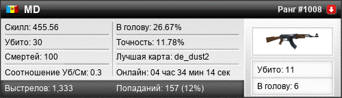 | de_dust | 4 | 0.50 | 0.14 | 1 | 18 | 00:28:50 | 31.07.2018 | |