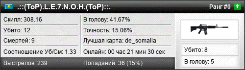 | de_somalia | 9 | 1.29 | 0.56 | 4 | 11 | 00:15:58 | 31.07.2018 | |