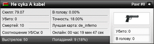 de_inferno | 0 | 0.00 | 0.00 | 1 | 10 | 00:19:47 | 01.08.2018 |