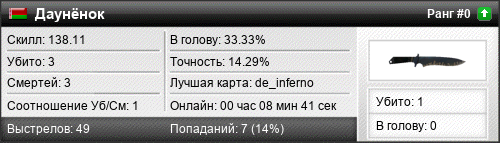 | de_inferno | 2 | 2.00 | 0.83 | 1 | 1 | 00:02:25 | 04.08.2018 | |