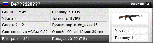 | de_aztec15 | 2 | 0.25 | 0.16 | 1 | 9 | 00:12:40 | 23.10.2015 | |