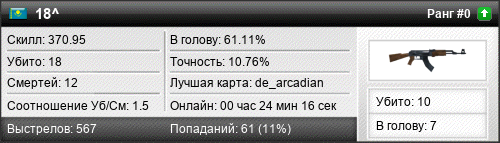 | de_arcadian | 12 | 2.00 | 0.87 | 1 | 9 | 00:13:44 | 08.08.2018 | |
