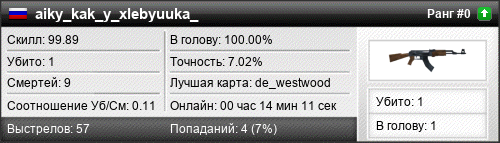 | de_westwood | 1 | 0.14 | 0.08 | 2 | 7 | 00:11:56 | 08.08.2018 | |