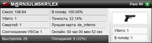 | de_inferno | 1 | 1.00 | 1.15 | 1 | 1 | 00:00:52 | 14.12.2015 | |