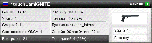 | de_inferno | 1 | 1.00 | 0.23 | 1 | 3 | 00:04:22 | 14.08.2018 | |