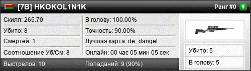 | de_dangel | 5 | 5.00 | 1.38 | 2 | 2 | 00:03:37 | 24.08.2018 | |