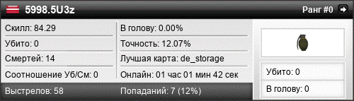 | de_nuke | 0 | 0.00 | 0.00 | 1 | 7 | 00:11:59 | 25.08.2018 | |