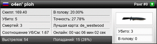 | de_westwood | 3 | 1.50 | 0.94 | 1 | 4 | 00:03:11 | 26.08.2018 | |